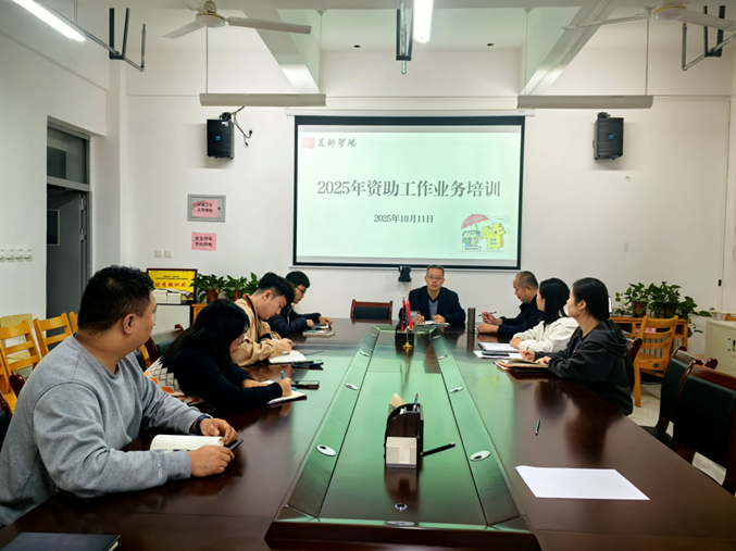 首先,资助专干谭广强向大家传达了2025年学校学生资助工作业务培训会的会议精神,介绍了关于家庭经济困难学生认定、各类奖助学金、服兵役国家教育资助的最新政策,详细解读了有关工作流程、材料审核等方面的内容。