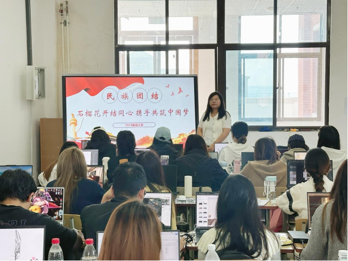 为深入贯彻落实中央民族工作会议精神,全面铸牢中华民族共同体意识,进一步促进各民族师生交往、交流、交融,推动民族团结进步创建工作提质增效,9月29日,美术学院各班召开“石榴花开结同心 携手共筑中国梦”主题班会。