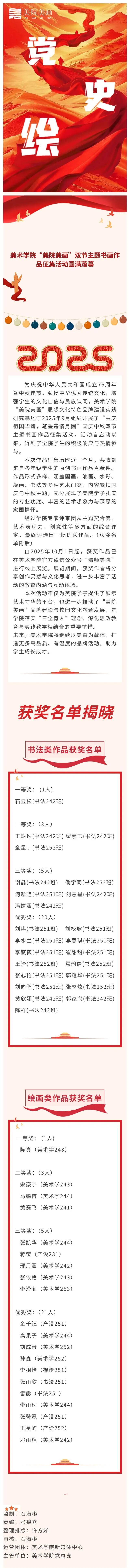 【美院美画‖第一百四十四期】美术学院“美院美画”双节主题书画作品征集活动圆满落幕