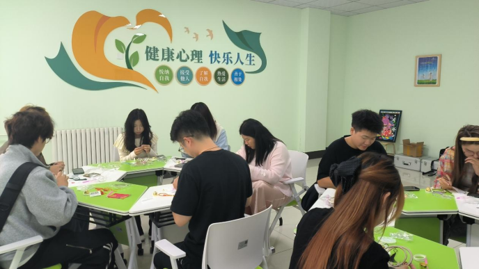 活动伊始,心理专干徐蓉结合当前大学生常见的心理压力源,分享了艺术疗愈的原理与意义,强调手工创作过程中专注与表达对情绪调节的积极作用,并讲解了风铃的制作技巧,引导同学们将手作过程视为一次专注的“正念”练习,鼓励大家暂时抛开烦恼,沉浸于指尖的创造,聆听内心与材料对话的声音,从而达到舒缓压力、愉悦身心的效果。
