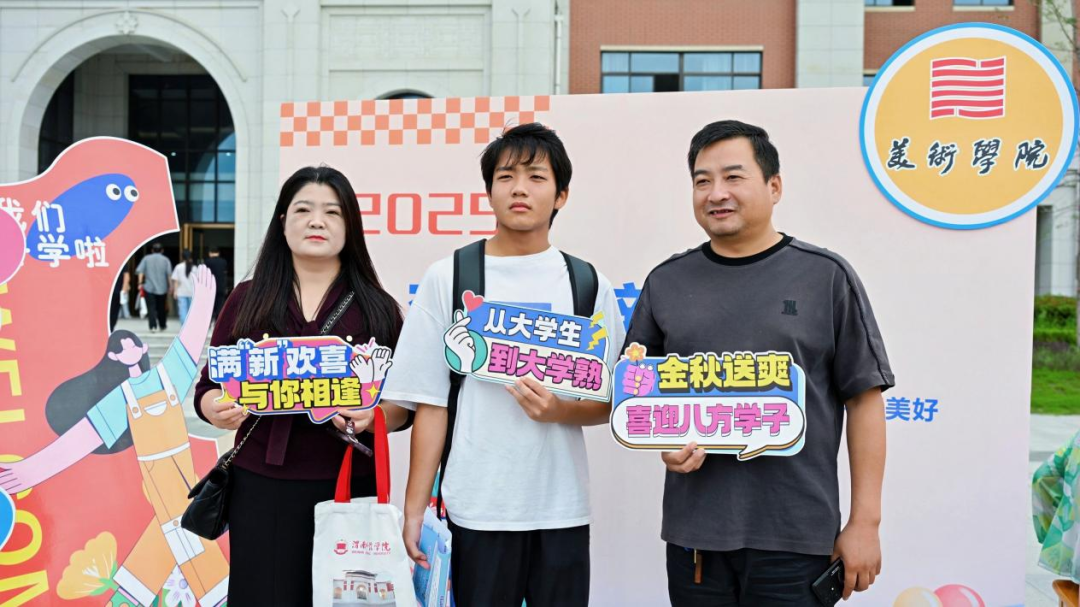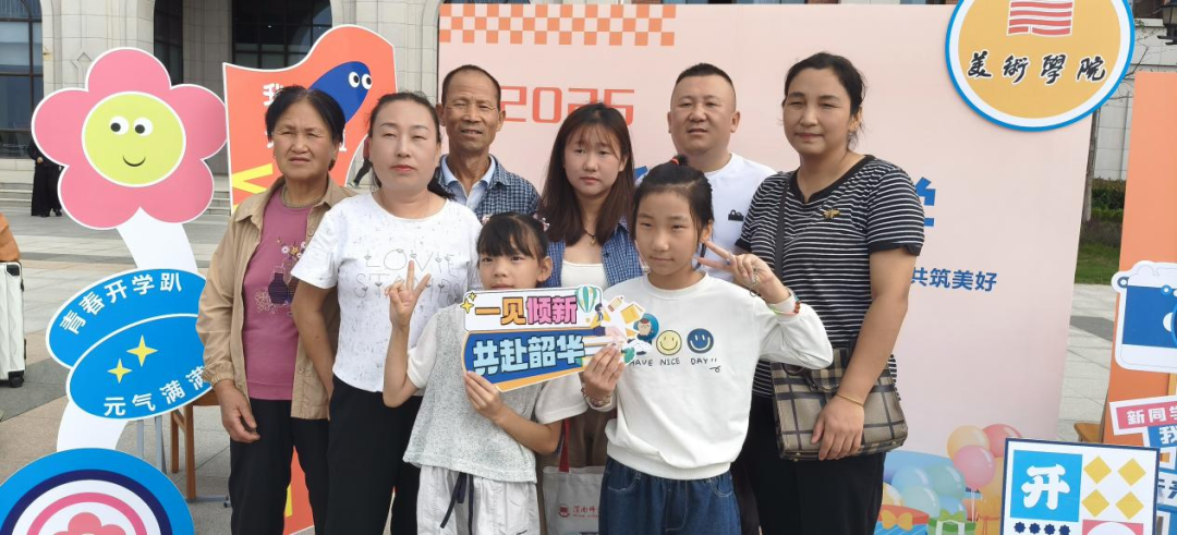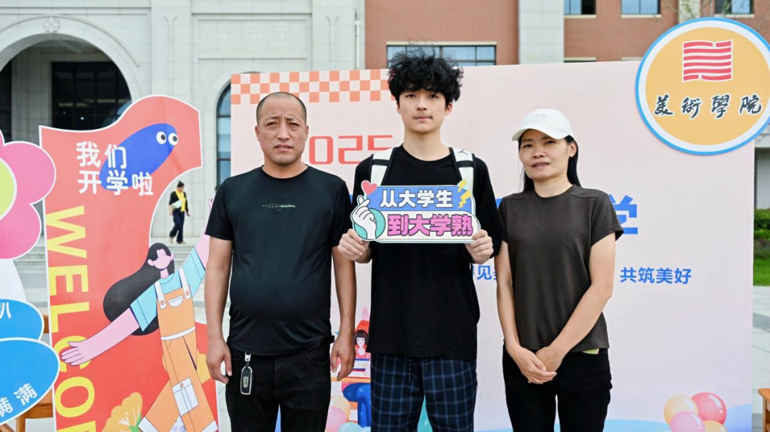 在主教学楼,学院特意设置“打卡合影区”,邀请新生与家长共同定格入学时刻的温馨瞬间,按下快门,将这一充满仪式感的画面永久留存。“孩子从小喜欢画画,今天能走进美术学院,我们特别激动,这个合照很有意义,以后看照片就能想起今天的场景。”新生家长笑着说道。