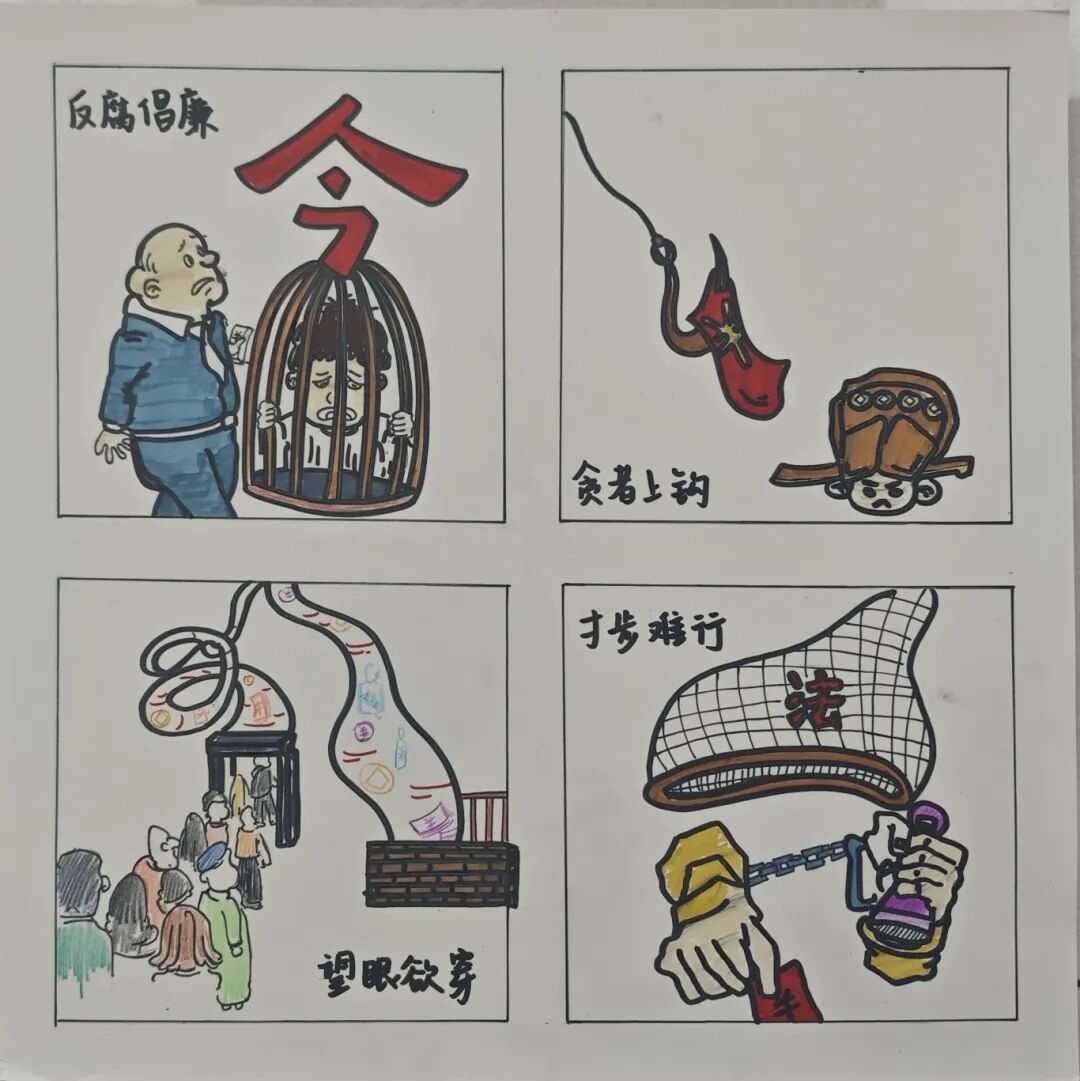为深入学习贯彻习近平总书记关于新时代廉洁文化建设的重要论述,认真贯彻落实中共中央办公厅《关于加强新时代廉洁文化建设的意见》、中共陕西省委《关于推进清廉陕西建设的意见》,推动深入贯彻中央八项规定精神学习教育走深走实,充分发挥廉洁教育基础作用,弘扬崇廉拒腐良好风尚,教育引导广大党员干部和师生员工进一步夯实清正廉洁思想根基,厚植廉洁奉公文化基础,培养廉洁自律道德操守,为纵深推进学校全面从严治党、党风廉政建设和反腐败斗争营造良好氛围,美术学院党总支特开设“廉洁文化教育宣传专栏”,以廉政漫画的形式将反腐倡廉主题与漫画艺术相结合,守正创新讲好廉洁故事,运用廉政漫画开展纪法教育,创新廉政文化建设。