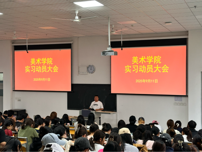 为明晰实习任务、强调纪律要求、筑牢安全屏障,保障教育实习工作得以顺利有序推进。9月11日下午,美术学院召开2026届毕业生实习动员大会,学院党总支书记周德锋、副书记雷毅、副院长石洁、专业负责人、带队教师以及全体毕业生参加会议。