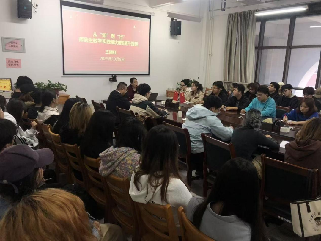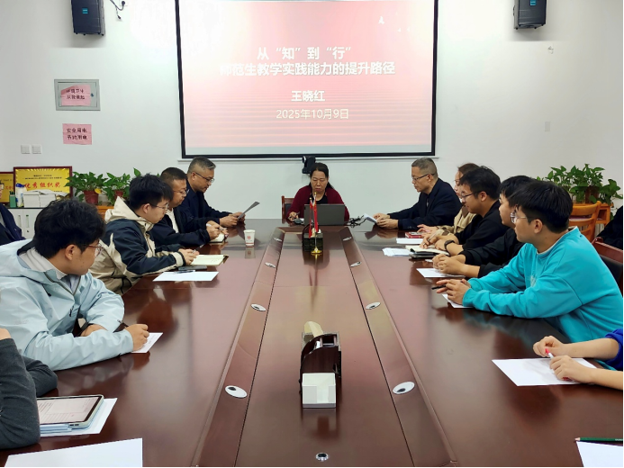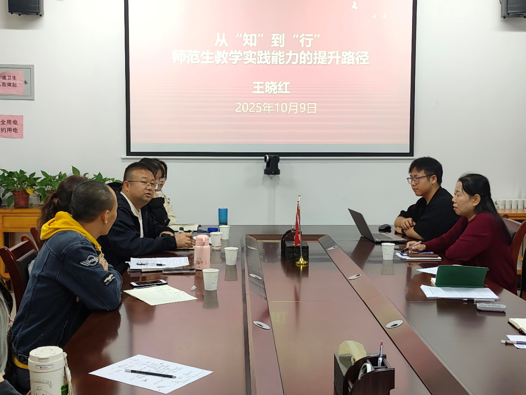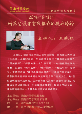 10月9日下午2:30,美术学院在富平校区教学楼二楼会议室举办“从知到行:师范生教学实践能力的提升路径”专题红烛讲坛,特邀渭南师范学院人文学院教授、陕西理工大学硕士生导师王晓红担任主讲人,学院党总支书记周德锋、美术学专业负责人王月海及30多名师范生代表参加,活动由院长石海彬主持。