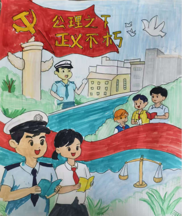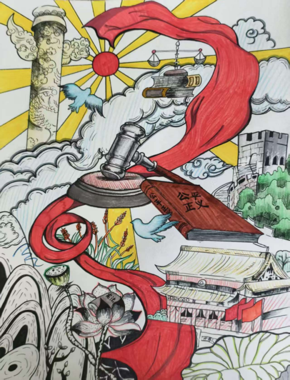 本次活动以普及法律知识、弘扬法治精神为主旨,鼓励学生运用专业特长表达对法治的理解与思考。活动期间,学生们表现出极高的参与热情,利用课余时间精心创作,最终提交的作品形式多样,涵盖中国画、书法、油画、水彩、宣传画等多个艺术门类。