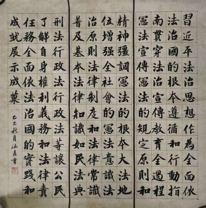为创新法制教育形式,提升学生法治素养。近日,美术学院成功举办“法治青春·笔墨传情”法制教育主题创作活动。本次活动得到全院学生的积极响应,共创作出各类书画作品150余件,最终经专业评审,选出了30幅优秀作品,展现了美院学子将法治精神融入艺术创作的热情与才华。