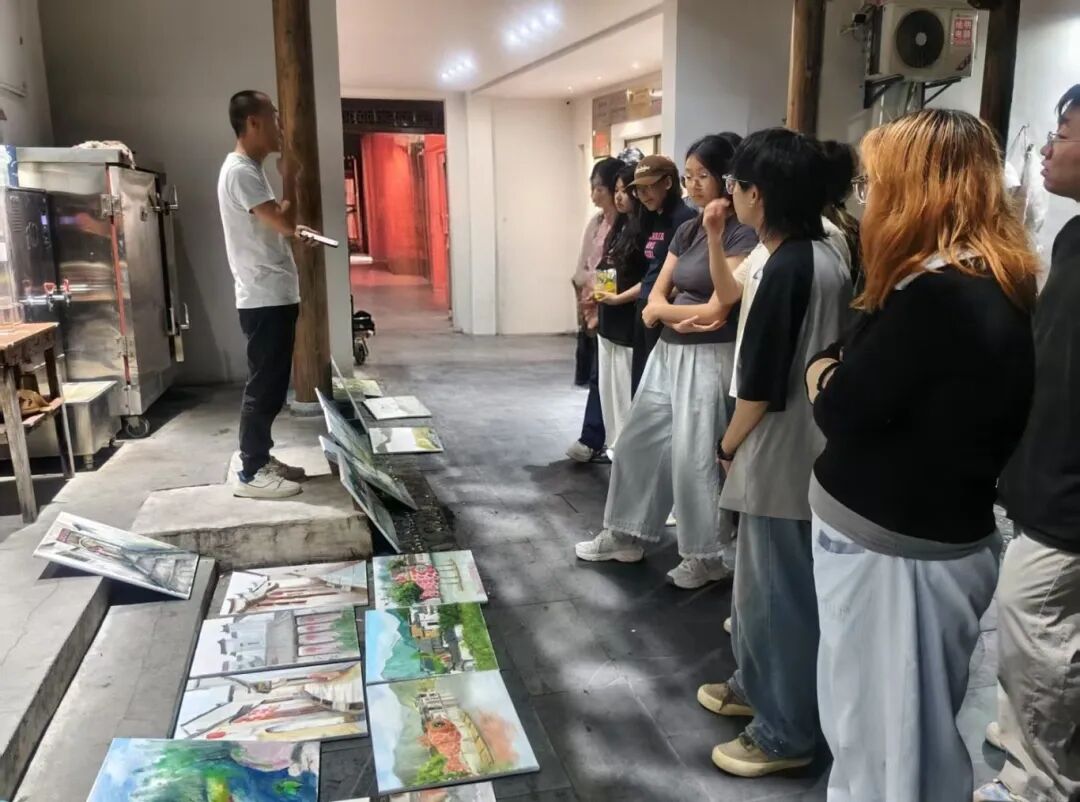 2025年10月16日晚间,美术学院美术学专业师生在安徽宏村写生基地举行了油画风景写生初期作品讲评会。此次写生是学院根据教学大纲要求组织的实践教学活动,旨在通过实地写生提升学生的专业素养与创作能力。