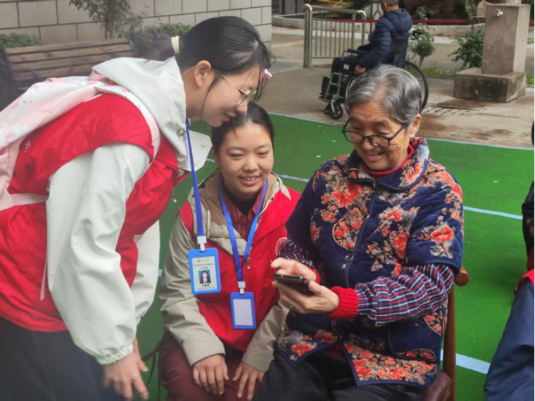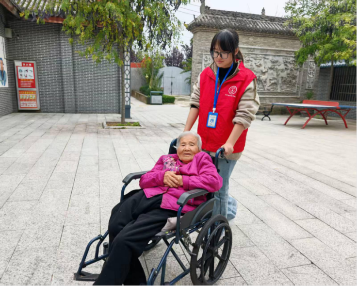 庭院小径,暖意流转。志愿者或扶老人臂弯,或推轮椅缓行,交谈声随风轻扬,从阶前盛放的秋菊,一路漫溯至往昔的峥嵘岁月。老人眼中的光与志愿者的倾听相映成趣,笑容蔓延间,敬老的暖意已悄然酿成时光深处的美好甘甜。