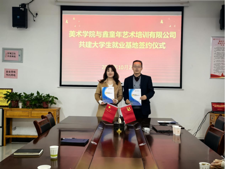 为进一步拓宽学生就业渠道,搭建校企合作桥梁,10月21日,美术学院在237教室成功举办就业宣讲会,并在学院会议室与云遮月网络科技有限公司、美硕之升文化发展有限公司、鑫童年艺术培训有限公司举行共建大学生就业基地签约仪式。美术学院党总支书记周德锋、就业专干张锦立及百余名学生共同参与此次活动。