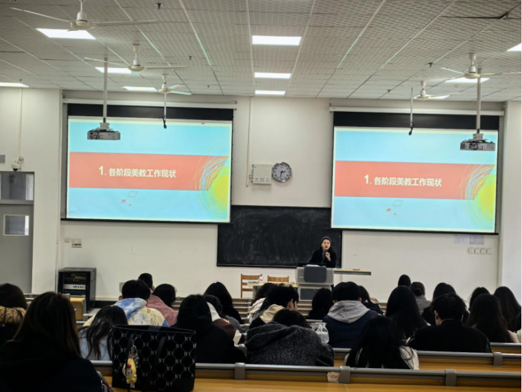 宣讲会上,三家企业代表依次上台,围绕企业发展历程、核心业务、人才需求及岗位信息展开详细介绍。云遮月网络科技有限公司代表重点分享了游戏美术外包、VR应用研发等业务领域,介绍对次世代场景模型师、角色模型师等岗位的人才需求。美硕之升文化发展有限公司代表介绍了艺术项目研学、文化艺术展览策划等岗位,鼓励有艺术教育情怀的学生加入,共同推动美育事业发展。鑫童年艺术培训有限公司代表以“说好普通话、写好中国字、绘出好未来”的愿景为切入点,讲解了书法、美术、口才培训等教学岗位需求。宣讲过程中,企业代表与学生积极互动,针对薪资待遇、晋升空间、实习安排等问题逐一解答,为学生规划职业发展路径提供了实用参考。