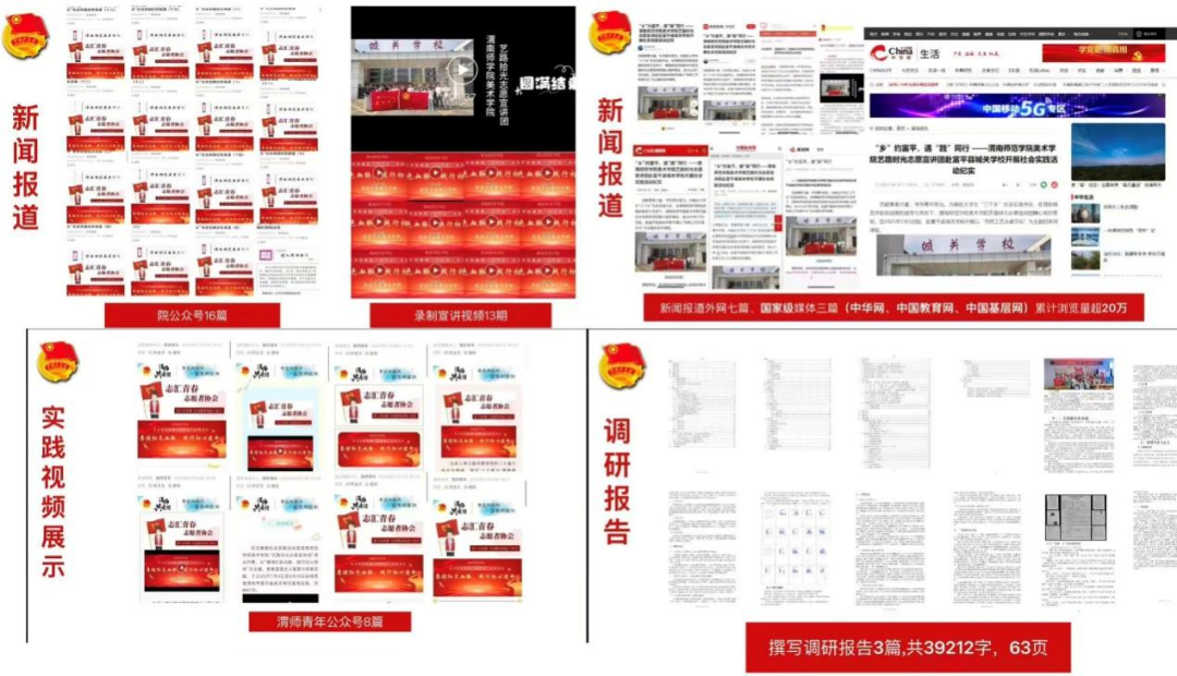 在暑期社会实践中,“艺路时光”志愿宣讲团为我们交出了满意答卷。院公众号推出16篇新闻报道,渭师青年公众号发布8篇实践动态,更有国家级媒体(中华网、中国教育网、中国基层网等)7篇报道聚焦,累计浏览量超20万;录制宣讲视频13期,多角度展现实践风采;还撰写3篇共39212字、63页的调研报告,深度剖析实践成果。从校内宣传到国家级媒体发声,从视频传播到学术调研,全方位的为我们呈现出一场有深度、有广度、有影响的青春实践盛宴。