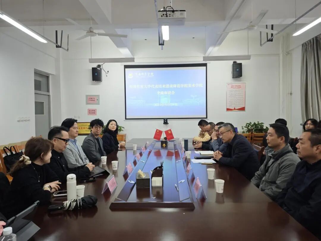 座谈会上,石海彬对代表团的到访表示热烈欢迎,从办学历史、专业特色、人才培养、艺术创作及国际交流合作等方面详细介绍了我校及美术学院的发展成果。他指出,中韩两国在设计与艺术教育领域合作潜力广阔,希望与东亚大学在课程共建、师生互访、联合创作、学术研究等方面深化务实合作,共同探索设计教育与艺术创新的融合路径,培养具有国际视野的高素质艺术人才。