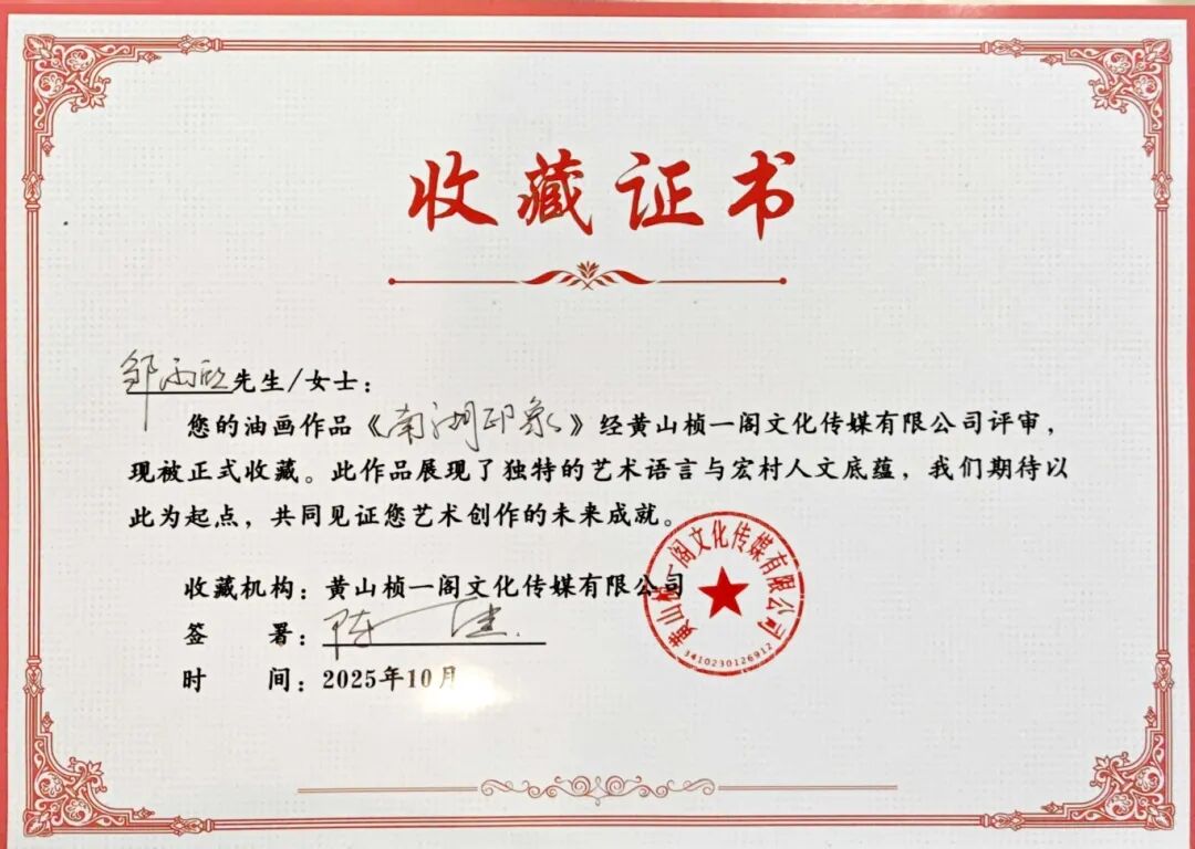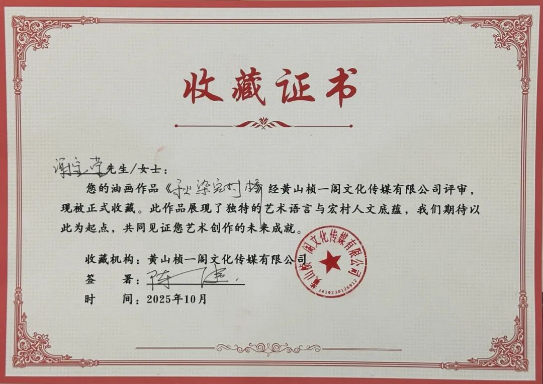 作品收藏不仅是对同学们艺术才华的即时肯定,也是对我院“以写生带动教学,以实践反哺课堂”教学模式的成功验证。它将课堂教学与社会认可无缝衔接,极大地激发了学生的创作热情与专业自信。带队老师表示,此次收藏是对实践教学成果最生动的展示,也是对学生学习成果的充分肯定。在即将离开写生基地之际获得这份认可,为本次秋季写生课程画上了一个圆满的句号。