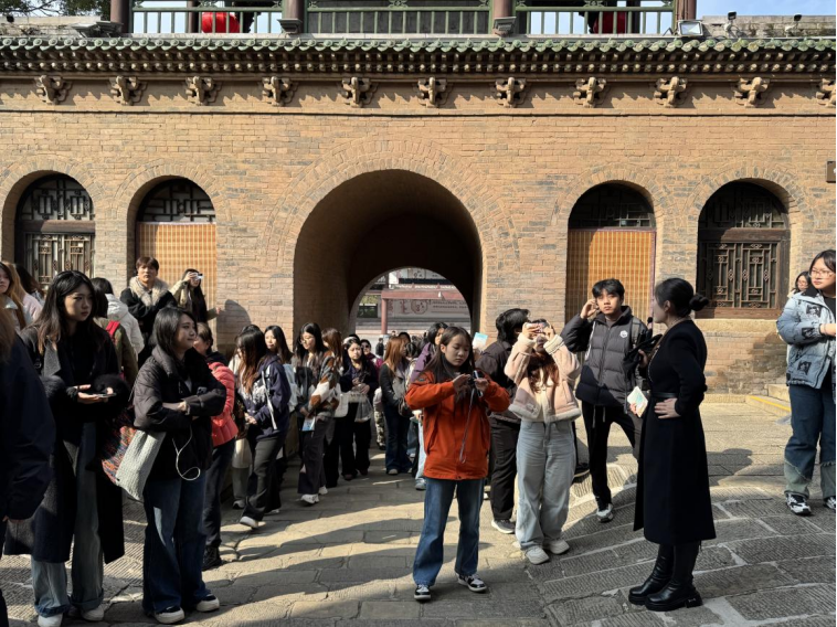 2025年10月22日,渭南师范学院美术学院国画班的学生们,来到山西阳城皇城相府开展户外实践考察。皇城相府作为清代文渊阁大学士陈廷敬的故居,被誉为“中国北方第一文化巨族之宅” ,作为中国北方明清官宦建筑群的典型代表,皇城相府以错落有致的古堡轮廓、雕梁画栋的官宅细节、兼具雄浑与雅致的人文自然景观,成为山水画写生的优质实践载体。其双城合璧的“巨龟”形制、河山楼的巍峨气势、藏兵洞的精巧布局及砖雕纹饰中的吉祥寓意,为国画创作提供了兼具自然意趣与人文底蕴的鲜活素材。