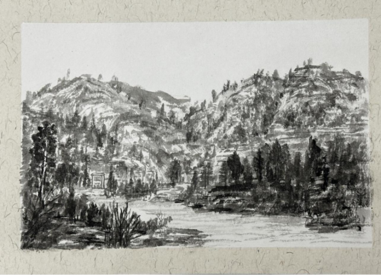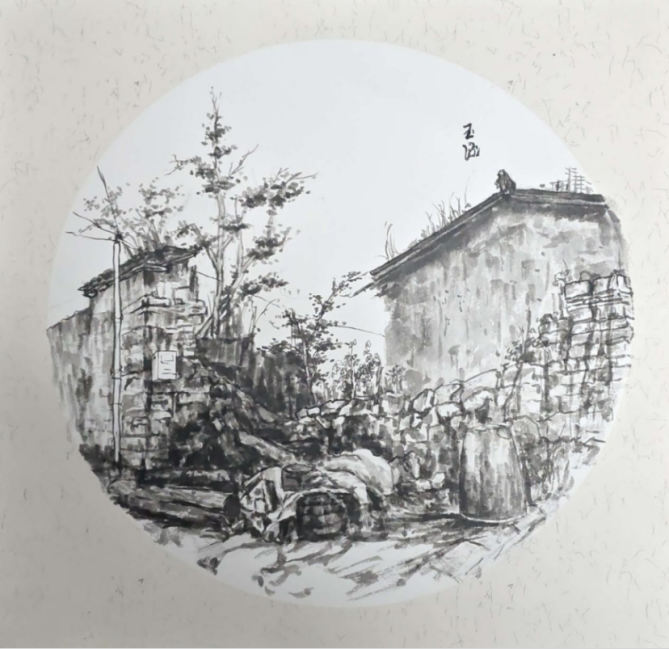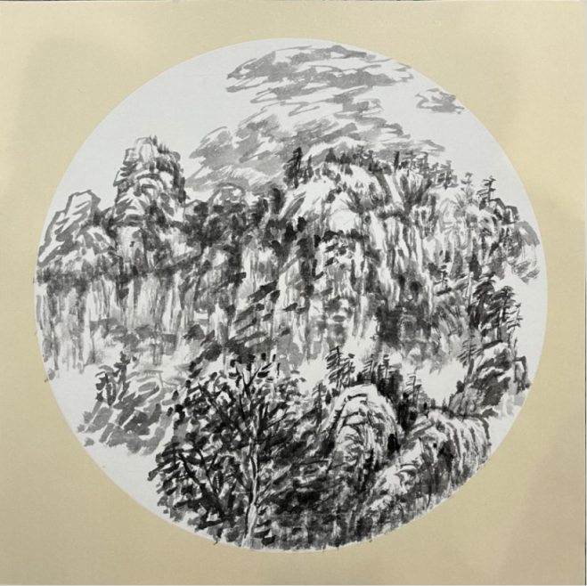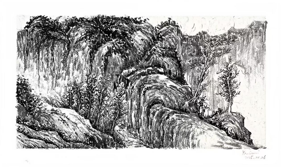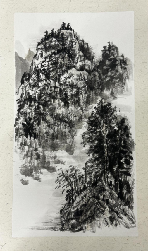太行山以巍峨的山峦、纵横的沟壑、苍劲的林木勾勒出北方山水的雄浑气象。写生期间,同学们每日深入山间取景,在观察山石肌理、云雾变化与光影层次的过程中,逐步理解太行山水“雄、奇、险、秀”的美学特质,深刻体会传统山水画“外师造化,中得心源”的创作理念。与当地村民的交流中,同学们更听闻了太行山的历史传说与当代乡村发展故事,将对自然的感知与对地域文化、社会现实的认知融入画笔,让作品兼具艺术质感与人文温度。