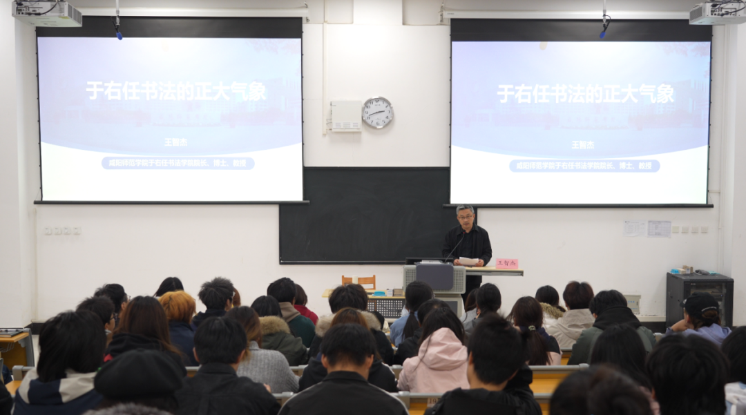 王智杰教授作为陕西省教学名师、中国书法家协会会员、陕西省书法家协会理事,长期致力于书法教学与研究,成就卓著。在讲座中,他围绕于右任先生的书法艺术,从艺术特色、美学内涵与时代精神等多个维度,系统阐述了“正大气象”的深厚文化底蕴与当代价值。