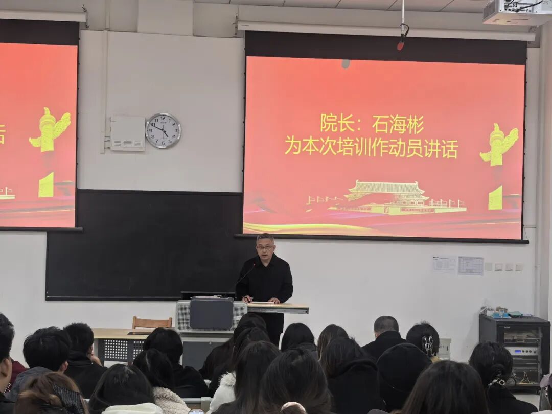 本次培训是美术学院分党校举办的第十三期积极分子培训班,石海彬做动员讲话时说到,入党积极分子是党的事业的“储备军”,积极分子的政治素质、理论修养,直接关系到未来党员队伍的先进性与纯洁性。本次培训设有理论授课、自学课程以及专业实践环节,培训安排既有“理论深度”也有“专业温度”,希望参加本次积极分子培训班的学员们能珍惜这次培训机会,以饱满的热情、端正的态度、扎实的行动,圆满完成培训任务珍惜培训机会。同时,他对参加本次培训班的学员提出四点希望:一要真学真信,筑牢思想根基,明晰入党初心;二要善学善用,以艺术语言诠释党的精神,实现专业与党性双提升;三要严遵纪律,严守考勤考核要求,确保学有所获;四要勇担使命,将个人理想融入党和国家事业,为文化事业进步贡献力量。
