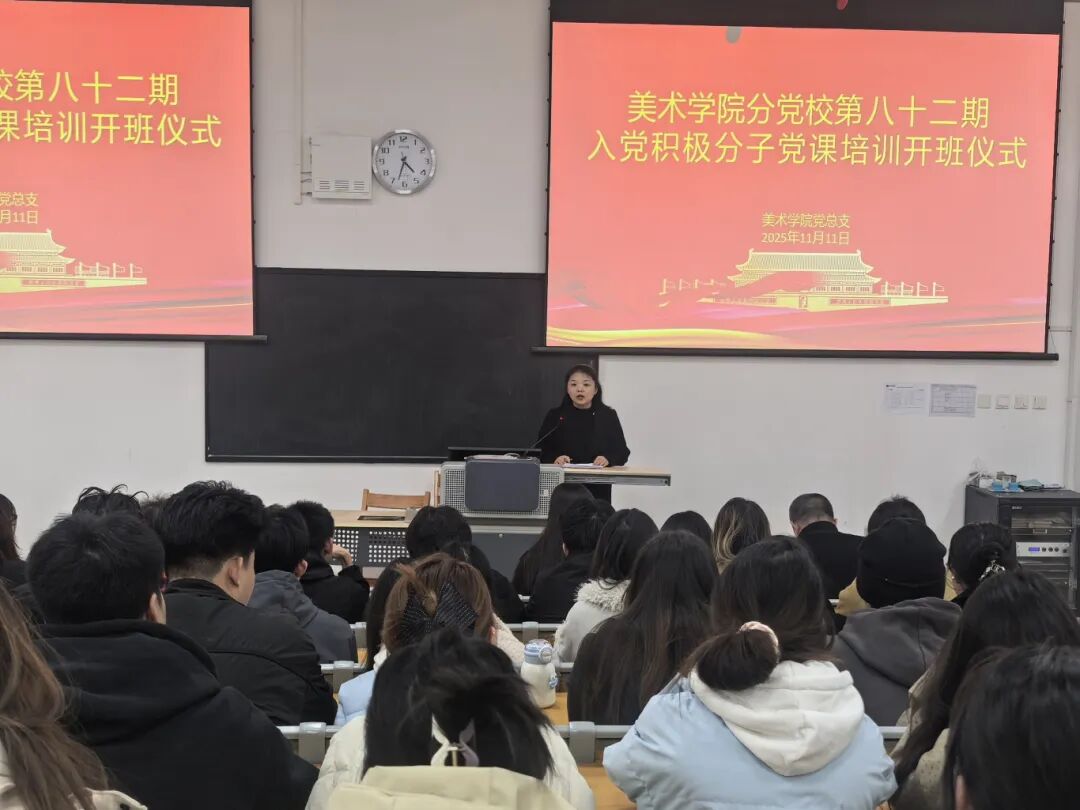 11月11日下午,美术学院党总支在富平校区教学楼229教室举行美术学院分党校第82期入党积极分子培训班开班仪式。院长石海彬、党总支副书记雷毅、设计师生融合党支部委员李乐乐、张有旭、徐蓉及43名入党积极分子参加开班仪式,仪式由党务秘书张华主持。