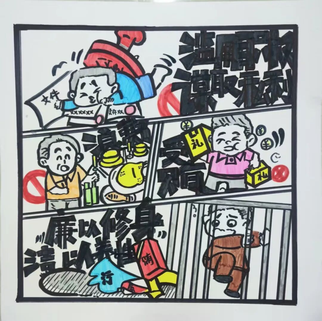 本系列作品主题鲜明,创意新颖,题材积极向上,展现了新时代青年大学生爱党爱国热情和重修养强品德的廉洁养成。下一步,美术学院党总支将持续开展廉政教育主题漫画创作,充分发挥学院专业特色,打造美术学院廉政教育主题专栏,全覆盖、多形式唱响廉政主题文化教育,弘扬民族文化,持续推进新时代廉洁文化建设不断前行。