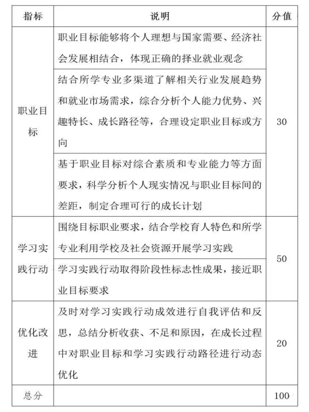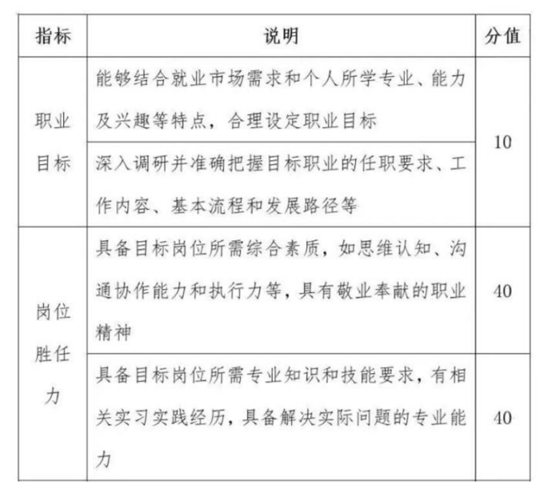 考察其树立生涯发展理念并合理设置职业目标、围绕实现目标持续行动并不断调整的成长过程,通过学习实践提升综合素质和专业能力,体现正确的择业就业观念。