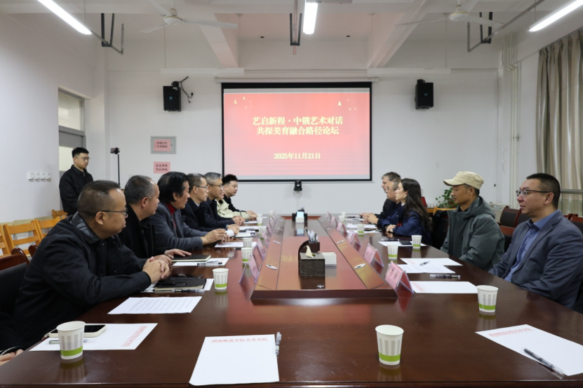 为持续深化国际艺术教学交流,搭建中俄艺术教育互鉴桥梁,11月21日上午,“艺启新程·中俄艺术对话”共探美育融合路径论坛在我校富平校区召开,论坛特邀俄罗斯圣彼得堡列宾美术学院博士阿丽莎·谢苗诺娃与莫斯科艺术学院美术教师阿列克谢·潘克拉托夫参加。校党委副书记、纪委书记、监察专员肖耀刚,富平县文联党组书记、主席樊宁,渭南市美协副主席杨建军、校国际合作与交流处处长郭石磊、莫斯科艺术学院执行院长殷晓克等嘉宾莅临现场。美术学院领导班子成员与师生代表300余人参与,各方共同就美育融合的创新路径开展探讨与交流。活动由美术学院院长石海彬主持。