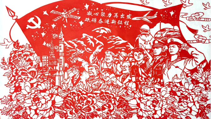 (宣讲团队员与学生共同完成设计创作剪纸作品)