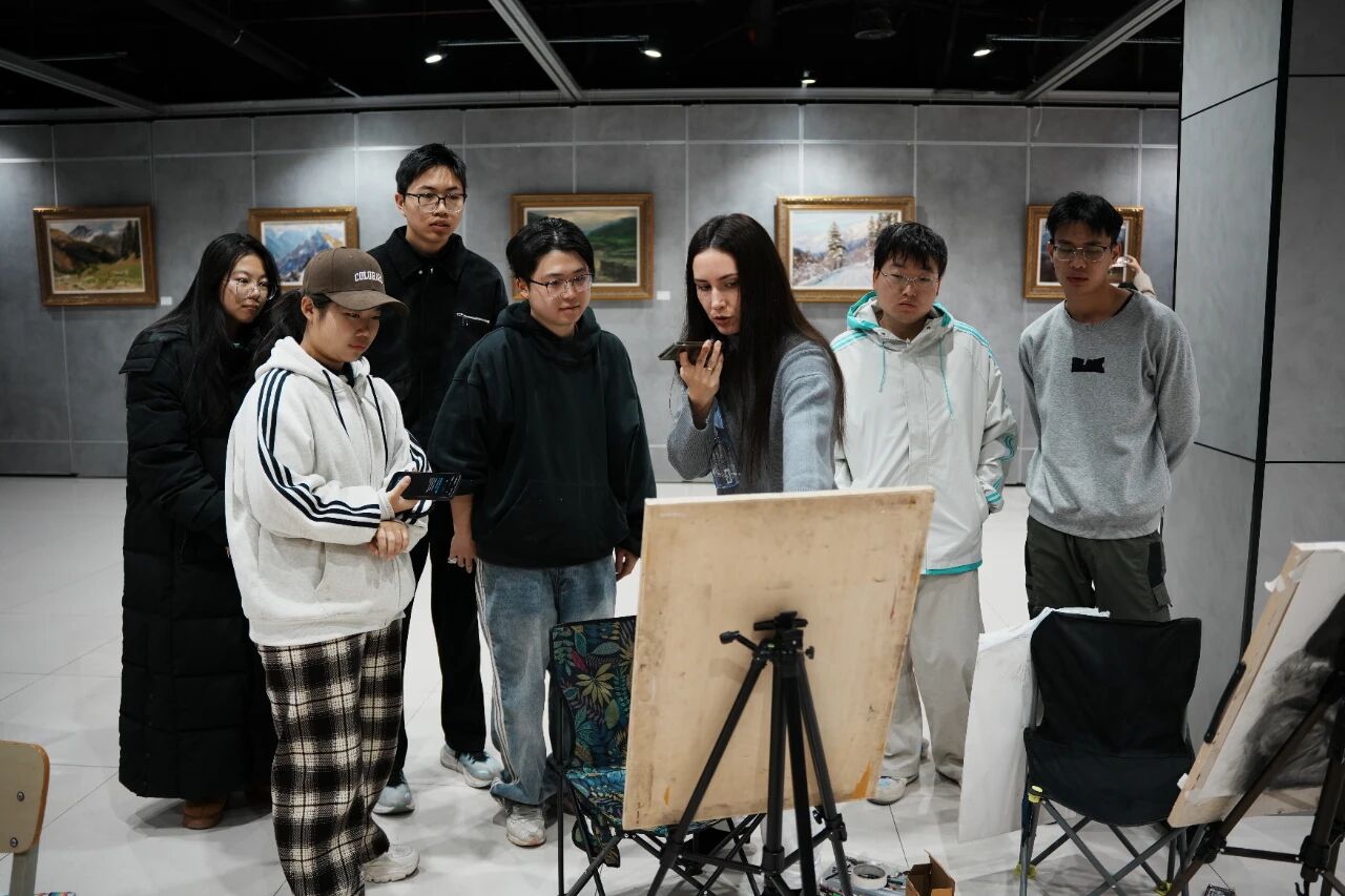 11月24日上午9时,渭南师范学院美术学院“以艺为媒,研教相长”俄罗斯具象写实油画教学活动进入第五天。本日课程在延续前几日严谨教学结构的基础上,深化学生对不同绘画媒介的理解与运用。