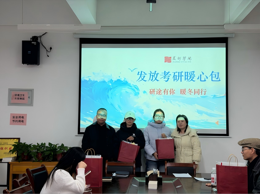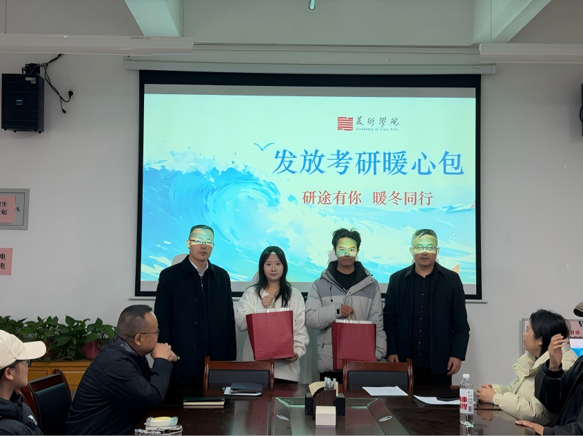 活动现场,领导与老师们亲手将“暖心礼包”送至每位学子手中,与大家亲切座谈交流。针对美术类考研的手绘创作技巧、理论知识背诵逻辑等核心难点,专业教师们结合教学经验给出针对性指导;老师们还细致询问学子们的复习进度与生活状况,叮嘱大家合理规划时间、调节备考心态,以饱满状态迎战考试。学子们纷纷表示,这份满载专业关怀的温暖让备考之路不再孤单,将把学院的关爱转化为冲刺动力,全力以赴向目标院校迈进。