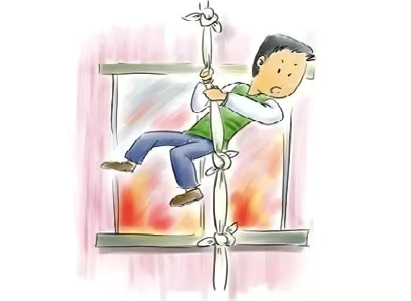 6、缓降自救,不等不靠:若火势已封锁逃生通道,可利用露台、排水管道转移到安全区域;也可将身边的床单、窗帘、绳索等撕成条状,用水打湿后连接牢固,系在牢固的物体上,缓慢降落到楼下或低楼层安全区域。