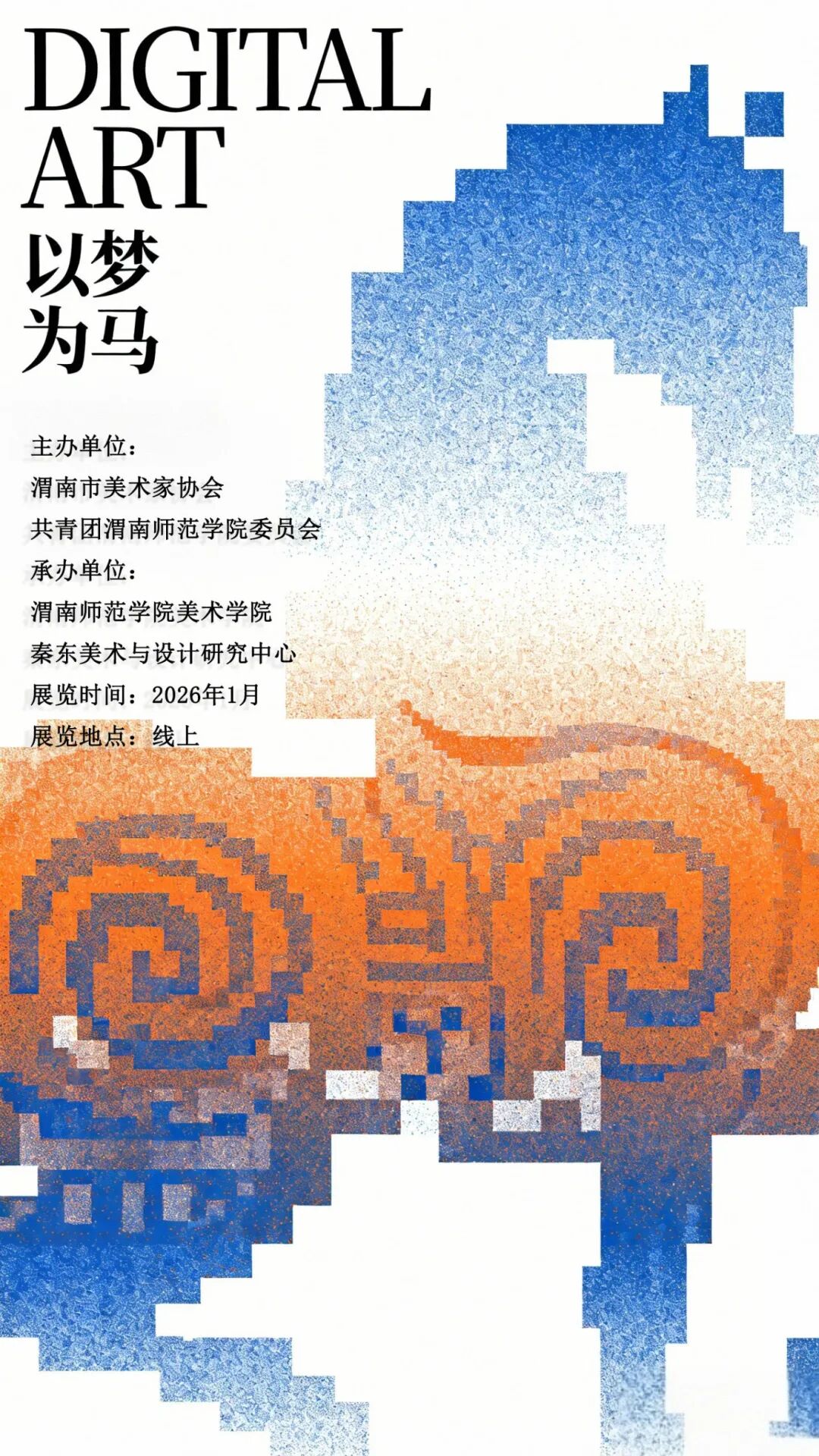 “以梦为马——2026年AIGC主题美术作品展”征稿正式启动,现面向渭南市各类院校师生公开征集以“马”为核心意象的AIGC原创美术作品。本次展览旨在展现当下学子将个人梦想转化为前进方向与动力的精神风貌,要求作品结合自身梦想,深刻诠释“马”的文化内涵,深入探索人工智能技术与艺术创作的有机融合,推动富有时代精神的创新艺术实践。