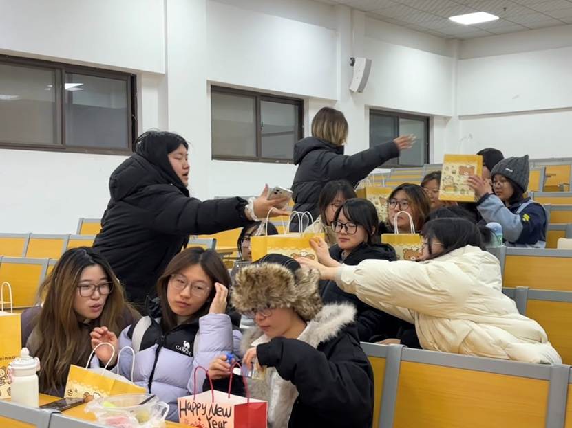 随后,各部门部长依次上台,为部员送上精心准备的小礼物。为新的一年添上一份满满的惊喜。这些礼物虽小,却承载着协会对每一位成员一学期以来团结协作、积极进取的感谢与鼓励,现场洋溢着温馨与感动。晚会的高潮,当属精彩纷呈的互动游戏环节。在主持人的热情引导下,现场迅速被欢乐的氛围点燃。大家踊跃参与、全情投入,欢声笑语此起彼伏。