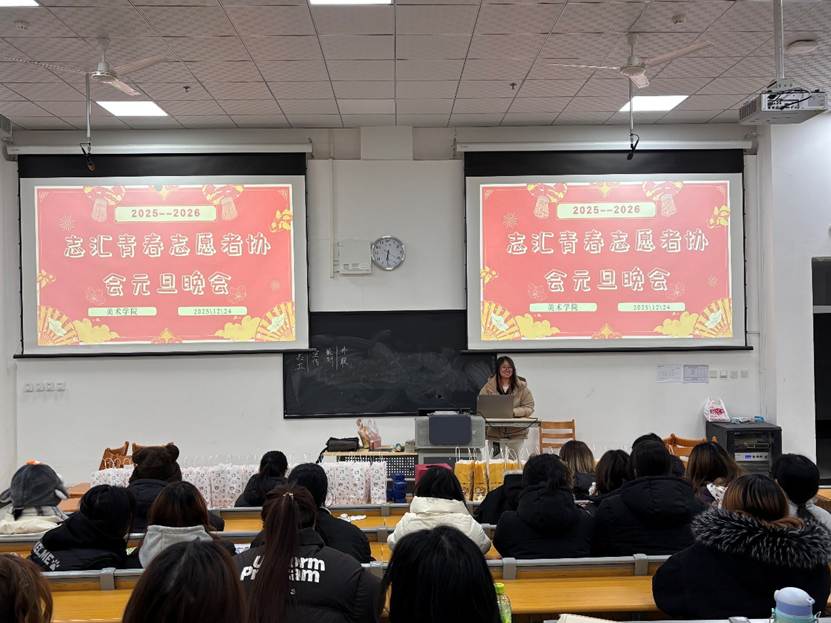 时光荏苒,岁末将至。12月24日,美术学院志汇青春志愿者协会在229教室举办了一场温馨而富有意义的元旦晚会。大家怀揣着对新年的憧憬齐聚一堂,在温馨的氛围里挥别旧岁,以欢笑与陪伴迎接新年的美好曙光。