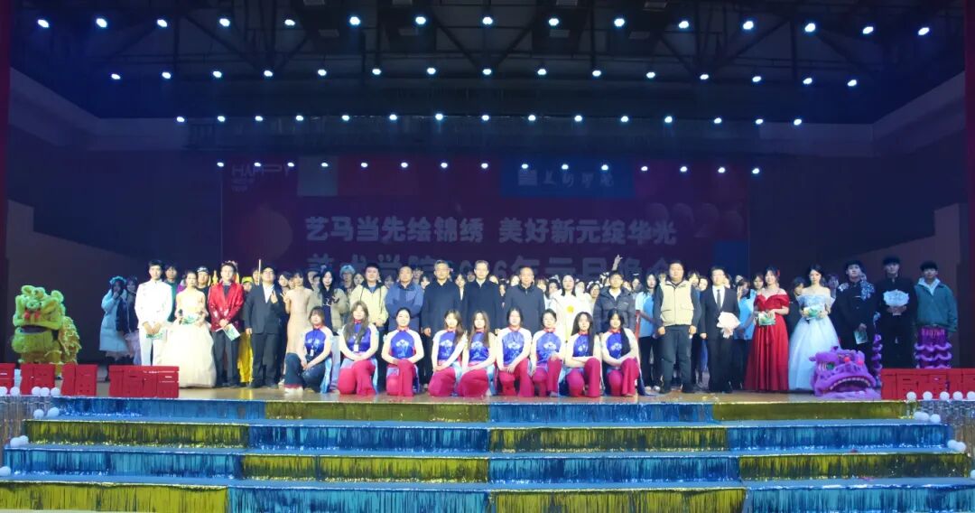 艺马当先绘锦绣,美好新元绽华光。12月22日晚,美术学院2026年元旦晚会在《正月里来正月正》的欢快旋律中热闹启航。美术学院党政领导、教师代表、全体辅导员与500余名学生欢聚一堂,共赏视听盛宴,喜迎美好新元。