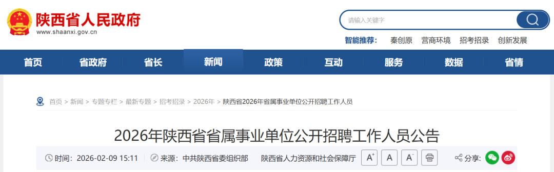 2026年陕西省省属事业单位公开招聘工作人员公告
